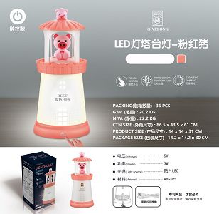 产品名称: LED三档色温无极调光触控灯塔夜灯-粉红猪
