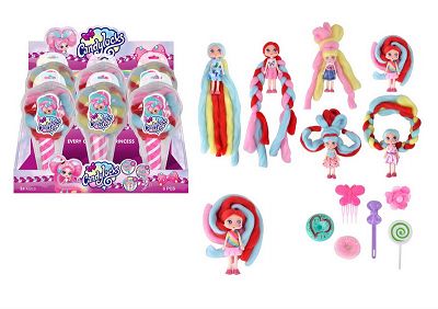 产品名称: 冰淇淋7寸实身Candylocks棉花糖头发型娃娃带香味惊喜美发娃带说明书带发夹橡皮圈