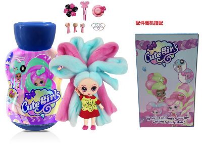 产品名称: 葫芦瓶5寸实身Candylocks棉花糖头发型娃娃带香味惊喜美发娃带说明书带发夹橡皮圈