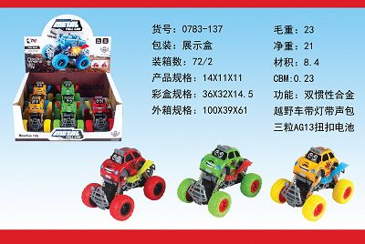 产品名称: 双惯性合金越野车带灯带声包三粒AG13扭扣电池