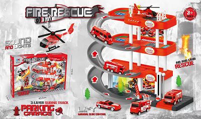 产品名称: 消防停车场带灯光音乐 (4只塑料滑行车+1只塑 料飞机)