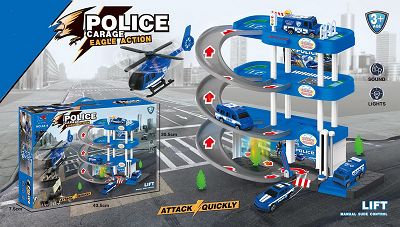 产品名称: 警察停车场带灯光音乐 (4只塑料滑行车+1只塑 料飞机)