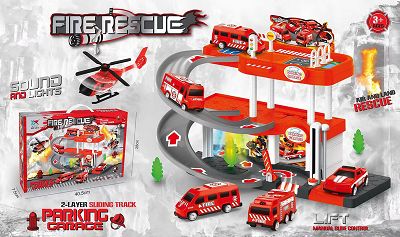 产品名称: 消防停车场带灯光音乐 (4只塑料滑行车+1只塑 料飞机)