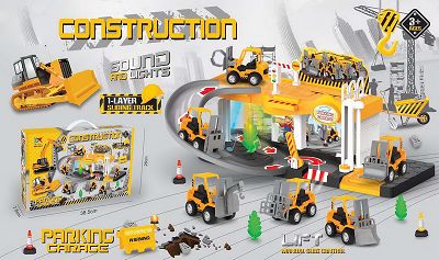产品名称: 工程停车场带灯光音乐 (3只塑料滑行工程车)